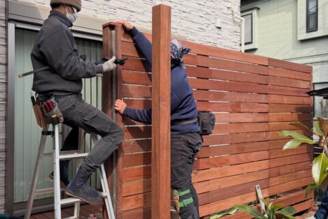 今日は既存の倉庫を新しい物に変えて目隠しのウッドフェンスを拡張しました!