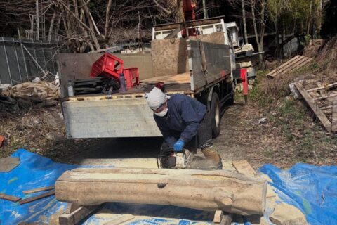 伐採した木を使ってベンチ作り🪵丸太から少しずつ形になってきました。完成までぜひ楽...